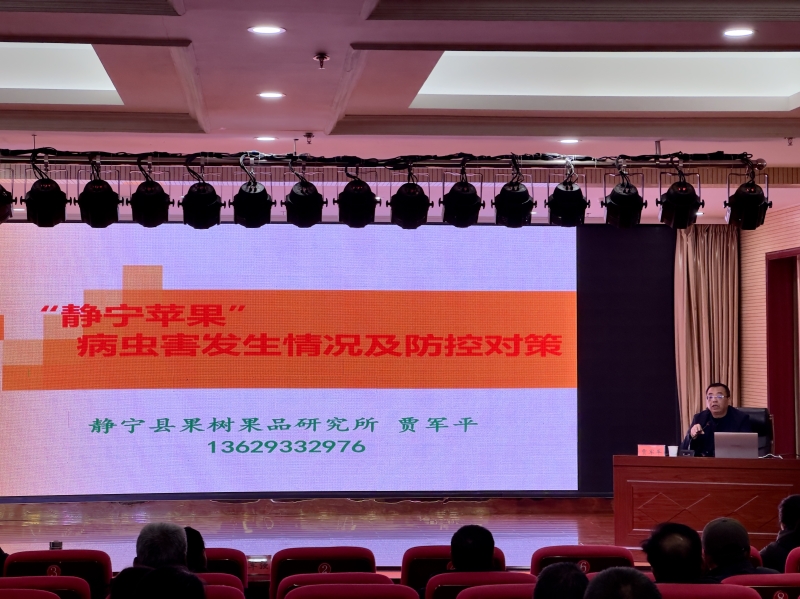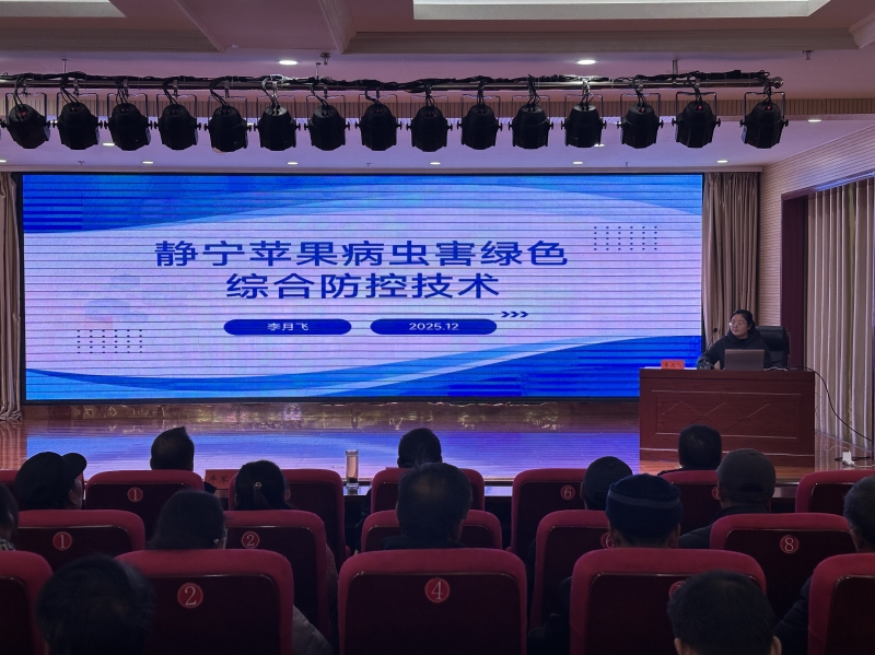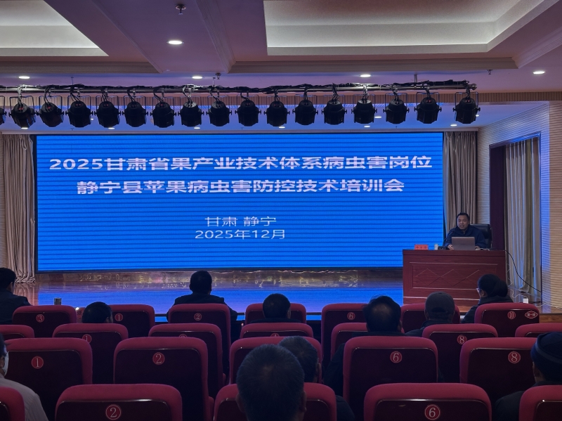 2025年12月8日至9日,我院林果花卉研究所依托省级苹果产业技术体系病虫害防控岗位,联合静宁县果树果品研究所,在静宁县组织举办了“苹果病虫害防控技术培训会”。静宁县农业技术骨干、合作社负责人和种植户等50余人参加。